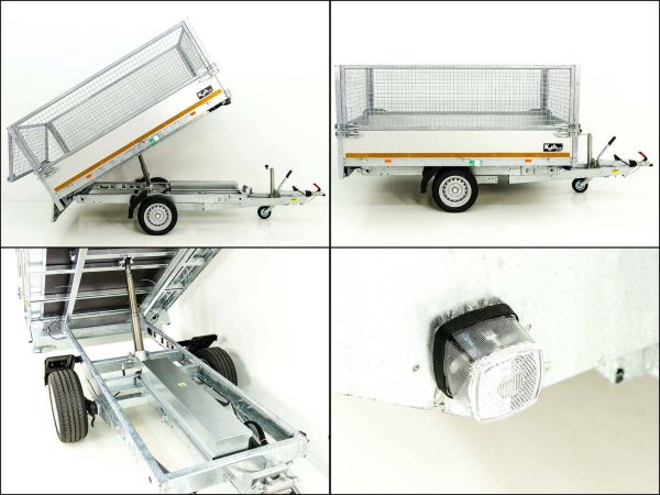 Eduard wywrotka tylna 150x256cm 1,5t | Pompa elektryczna + ręczna | Nadstawka siatkowa 70cm