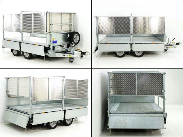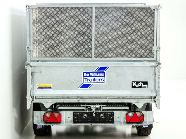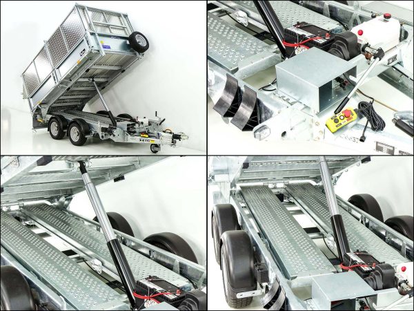 Wysokiej jakości, solidna wywrotka tylna marki Ifor Williams, odpowiednia do transportu ciężkich ładunków o ładowności do 2.437 kg. Wyposażona w system hydrauliki elektrycznej i aluminiową nadstawkę burtową.