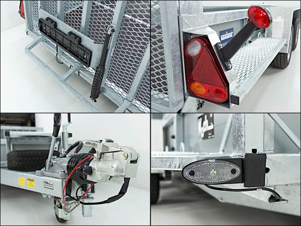Szczególne cechy | Rama stalowa ocynkowana; burty stalowe ocynkowane; aluminiowe błotniki ryflowane, do chodzenia; boczne stopnie; tył Beavertail (niski kąt najazdu); uchwyt na łyżkę koparki; 10 punktów mocowania zewnętrznych, 8 bocznych; dokumenty w komplecie |
